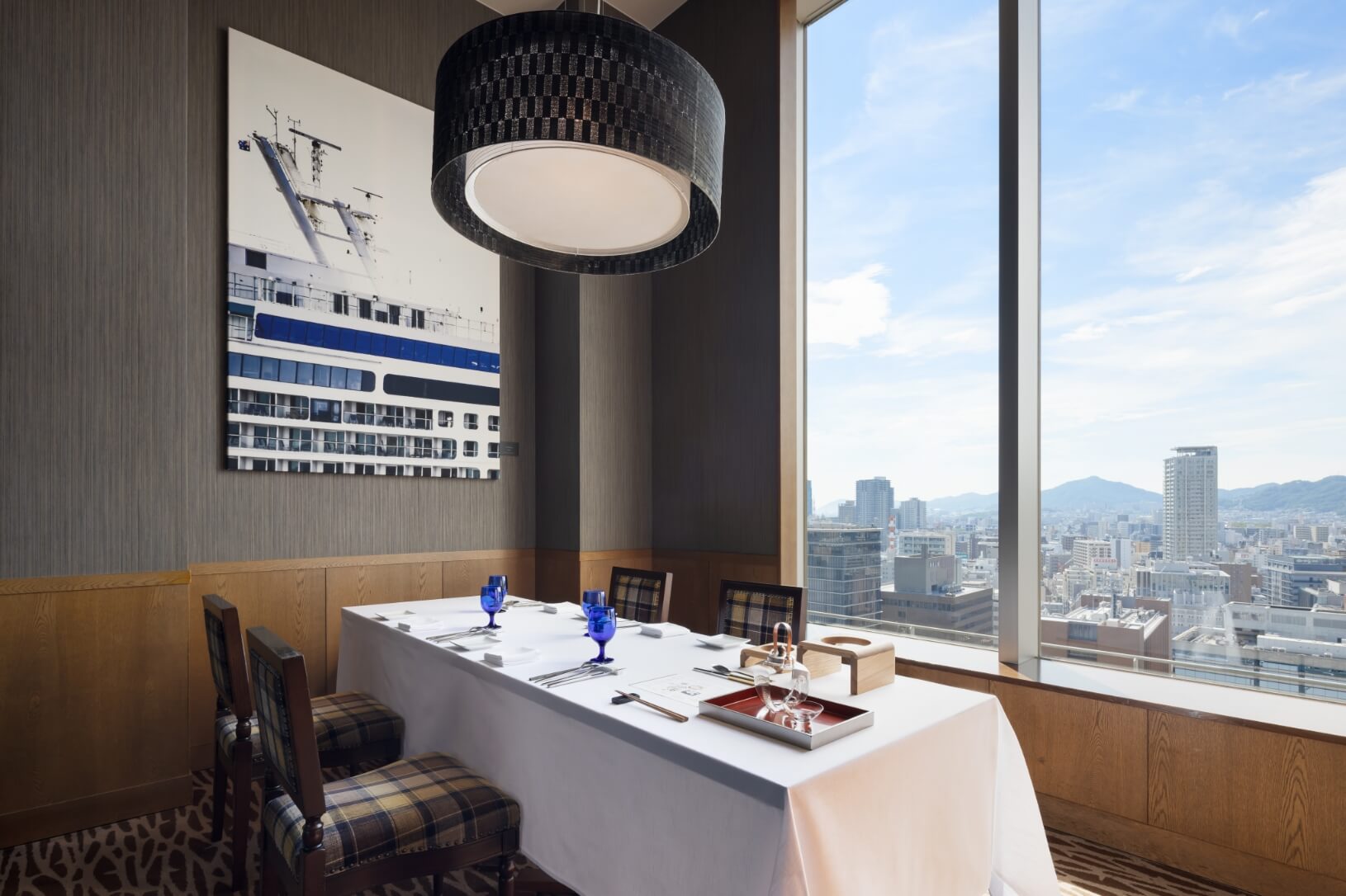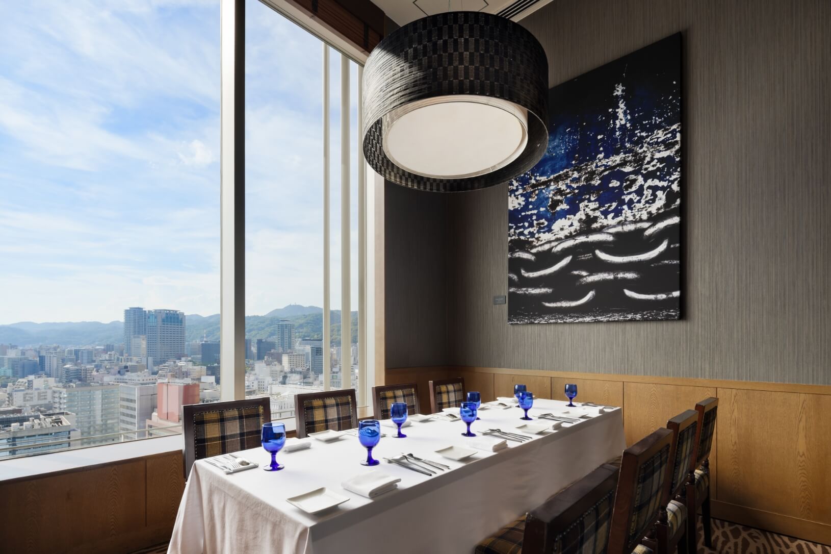 神戸の街並みと背後に広がる六甲の山並みを望む、開放感あふれる眺望をお楽しみいただけます。